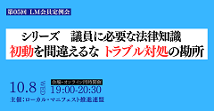 2025年10月8日(水)第05回 LM会員定例会「シリーズ議員に必要な法律知識『初動を間違えるな トラブル対処の勘所』」【オンライン併用】開催します -