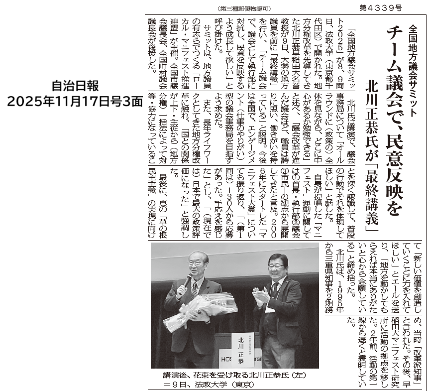 「全国地方議会サミット2025」【DAY2】北川正恭教授【LM最終講義】開催レポート -