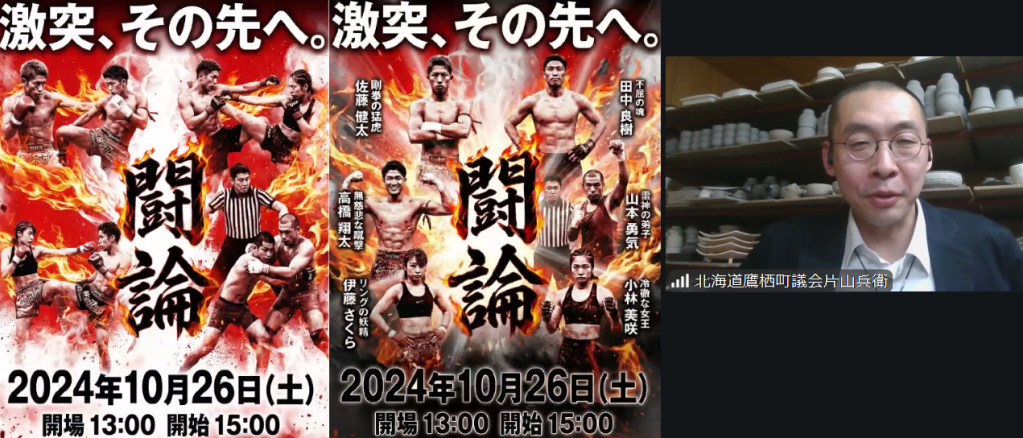 オンライン登壇の片山兵衛 北海道鷹栖町議会議員と東京会場をつなぎ、セミナーを開催