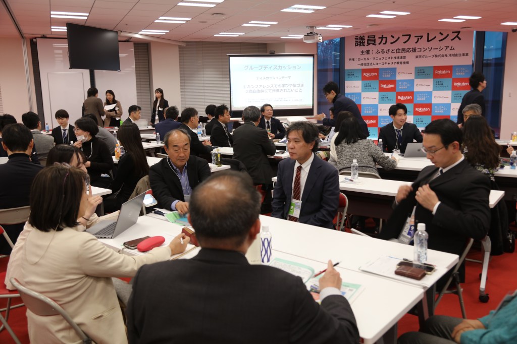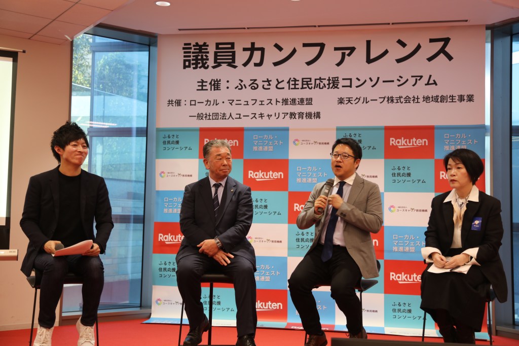 2026年1月15日(木)「『ふるさと住民登録制度』議員カンファレンス2026」を楽天グループ株式会社本社にて開催しました。今回は、ローカル・マニフェスト推進連盟が、ふるさと住民応援コンソーシアム、ユースキャリア教育機構、楽天グループ株式会社地域創生事業と連携し、新制度の理解を深めるために企画したものです。会場には、北海道から九州までの地方議員と、学生などを合わせて約100名が参加しました。
