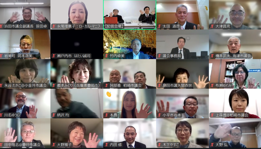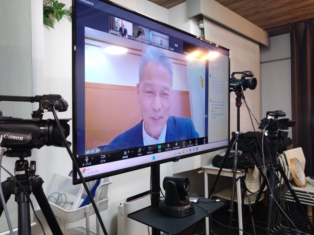 配信会場の様子。全国の議会・議員とzoomでつないで配信を行った